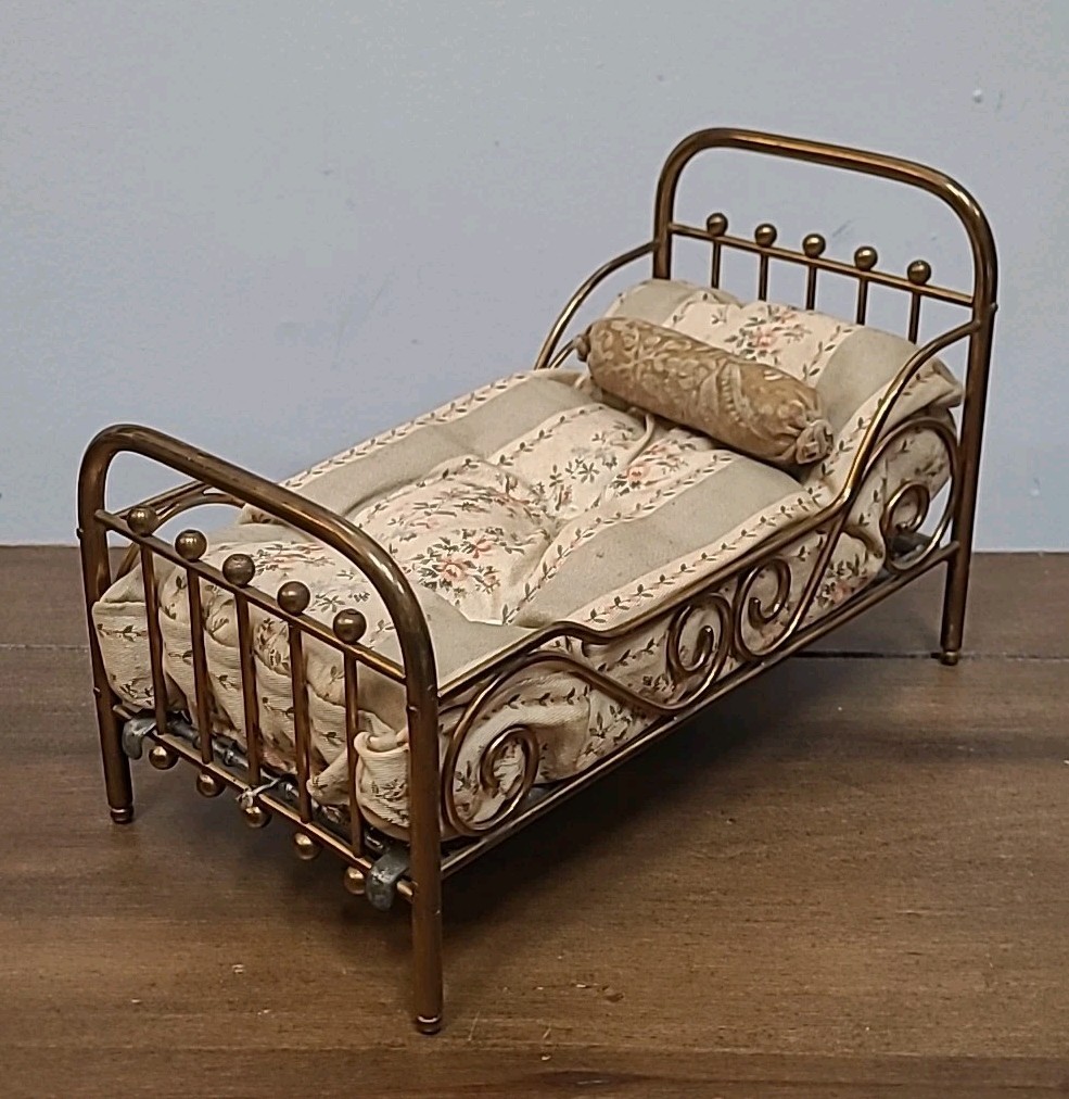 Antique Dollhouse Marklin Bed LARGE Brass Miniature Metal Bedding