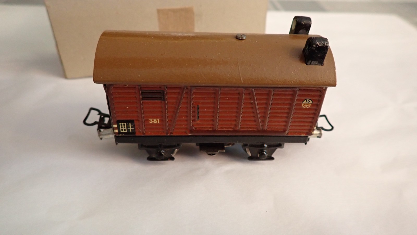 Rare Marklin 381S Tinplate Box car in OBX Lighted HO