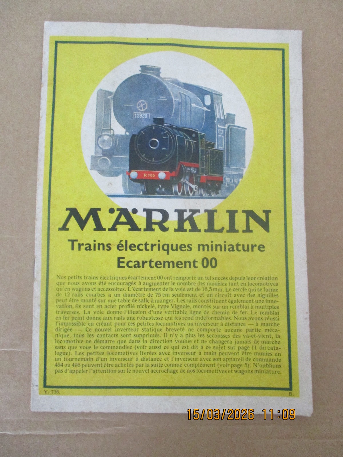 MARKLIN Catalogue échelle 00 de 1936 ref Y. 736.
