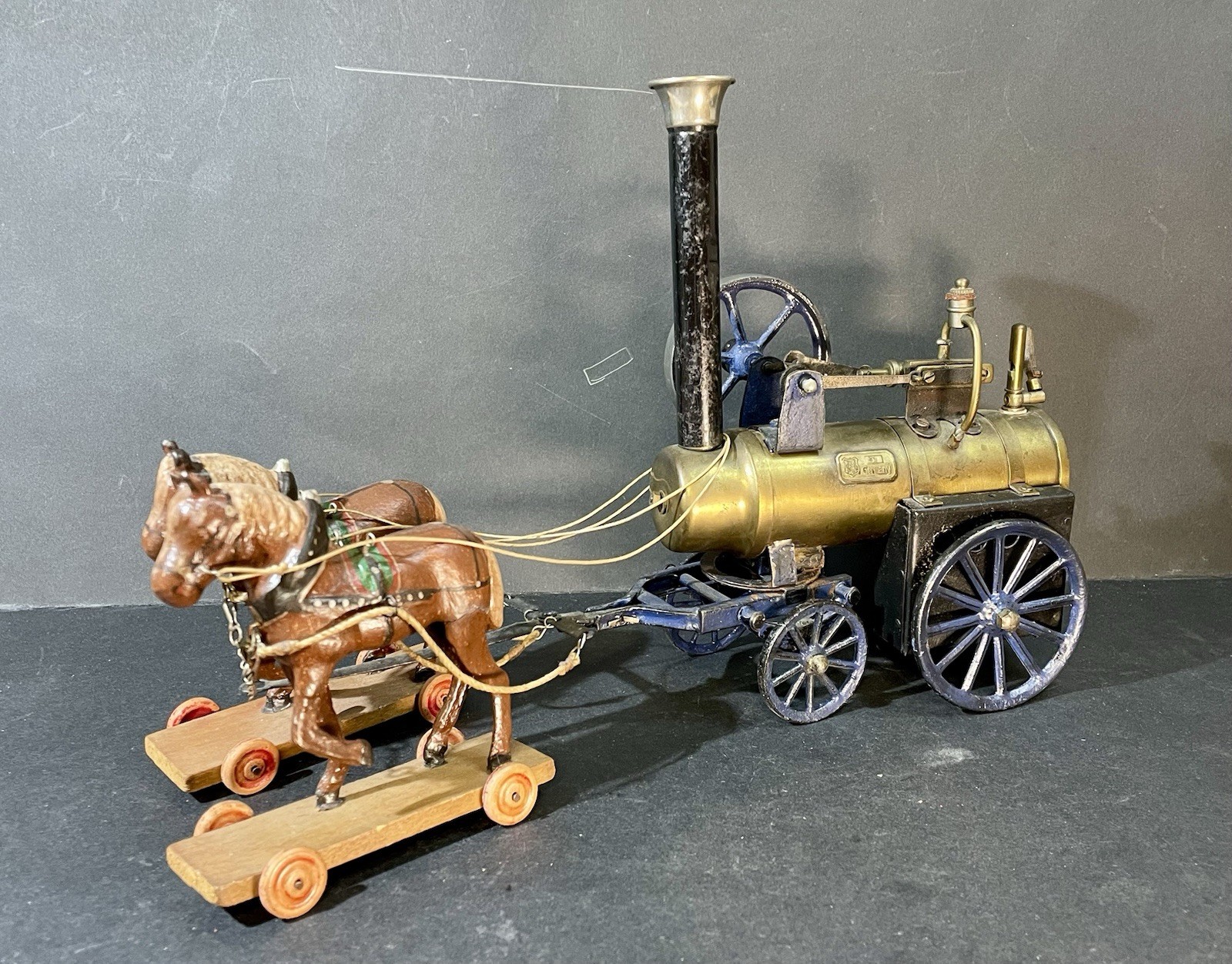 Märklin Dampfmaschine mit Pferdegespann um 1920–Seltenes Sammlerstück/Lokomobil