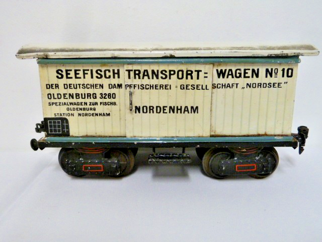 Märklin Seefisch Transport Wagen Nordenham 1849 Spur 1 hl uralt ca 1912 original