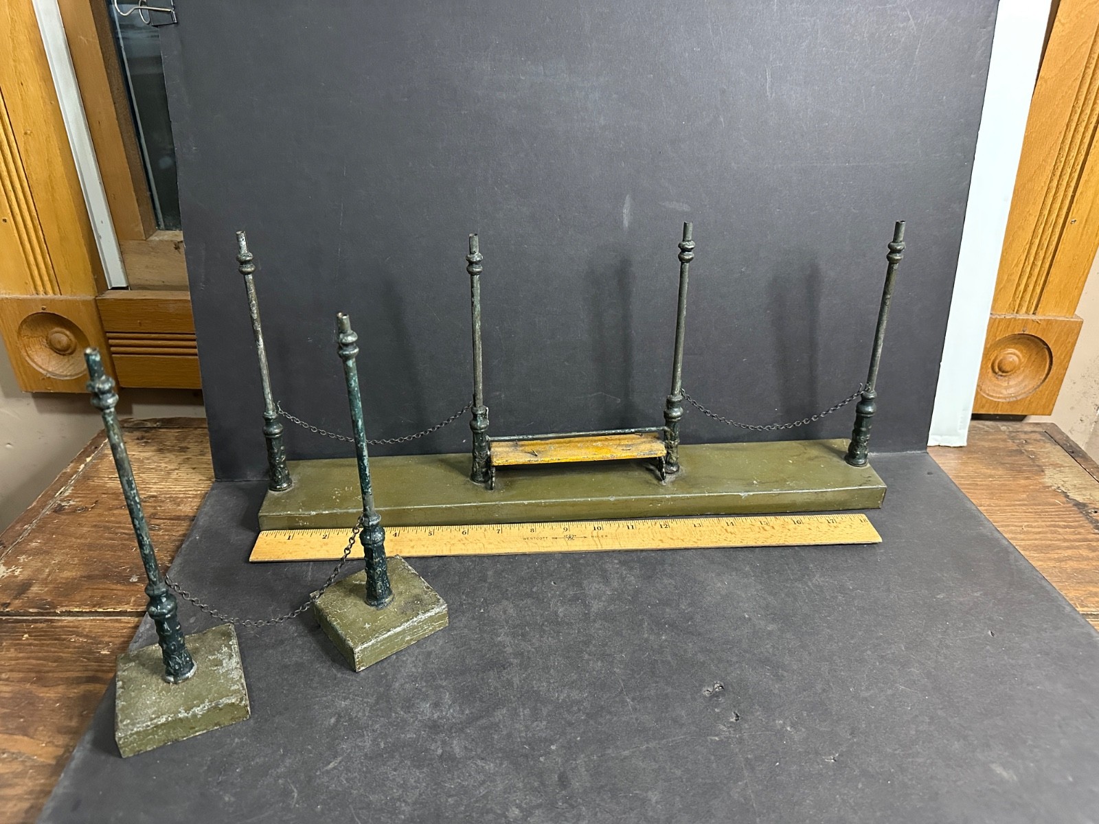 Antique Marklin Lamp Post & Railroad Bench Platform, c 1900, 3 Pieces, I Gauge